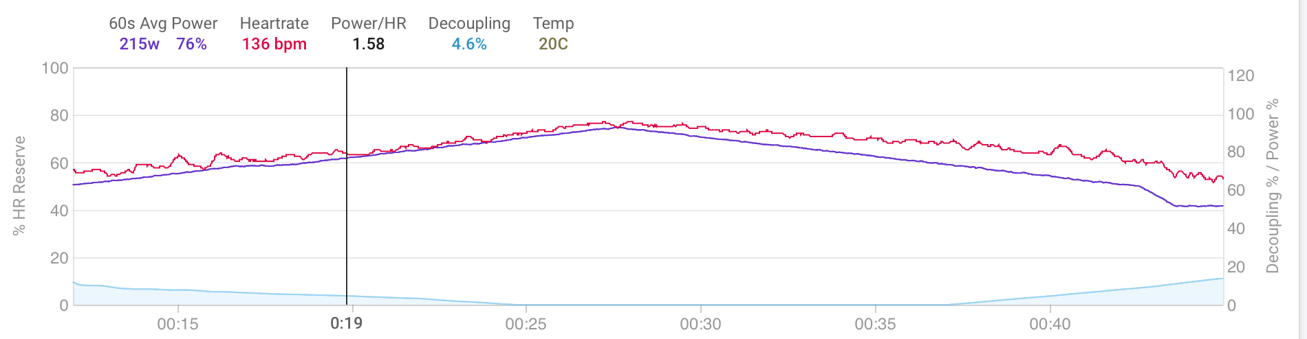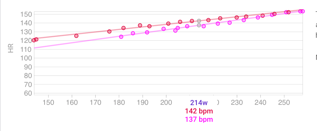 Since we are talking about cycling, figuring out where this thresholds is in terms of power can be pretty useful: luckily it is easy to check that on interval.icu, in my case is at 214W, which happens to be at around 72% of my FTP.