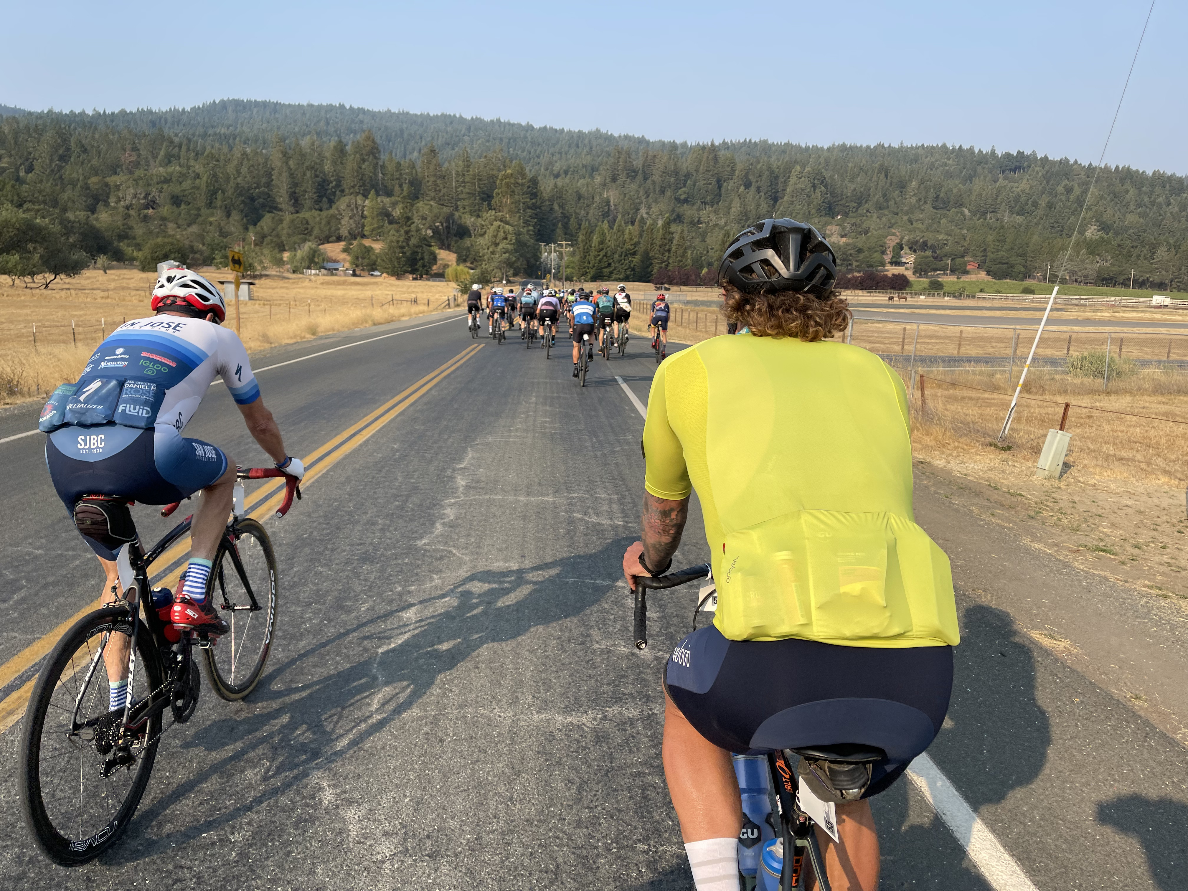 My game plan was not to kill myself on the first 3 climbs, try to stay in a good group on the descent so to have some company on the flat and windy stretch on Hwy1, then punch the rollers to the midway rest station and gather my strength before the killer climb of Fish Rock: that’s where typically my day turns South.